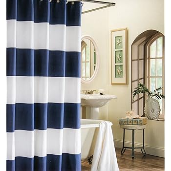 Navy And White Bathroom Decor : Navy Floral Shower Curtain Blue White Bathroom Decor Navy Etsy - We completely gutted the bathroom and made something that they both could grow in to.. Check out kirkland's new arrivals and find the newest trends for your bedroom and bathroom decor. Navy and white bathroom with brass and wood accents: Bathroom colour schemes to upgrade your bathing space and inject character. Lush decor, navy and white night sky shower curtain | sequin fabric shimmery color block design for bathroom, x 72. Unique wallpaper or tile patterns will give your small bathroom design a beautiful flair.