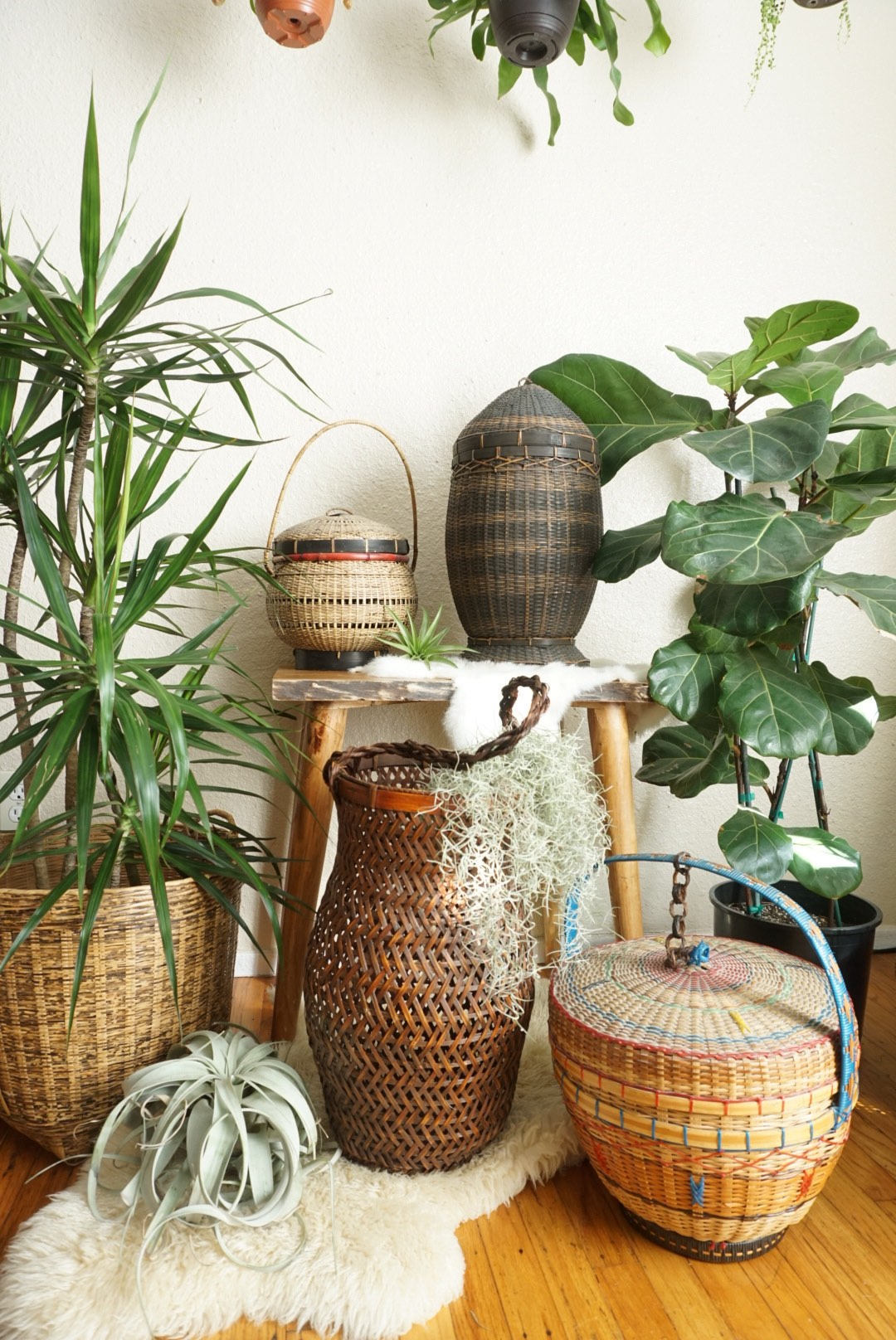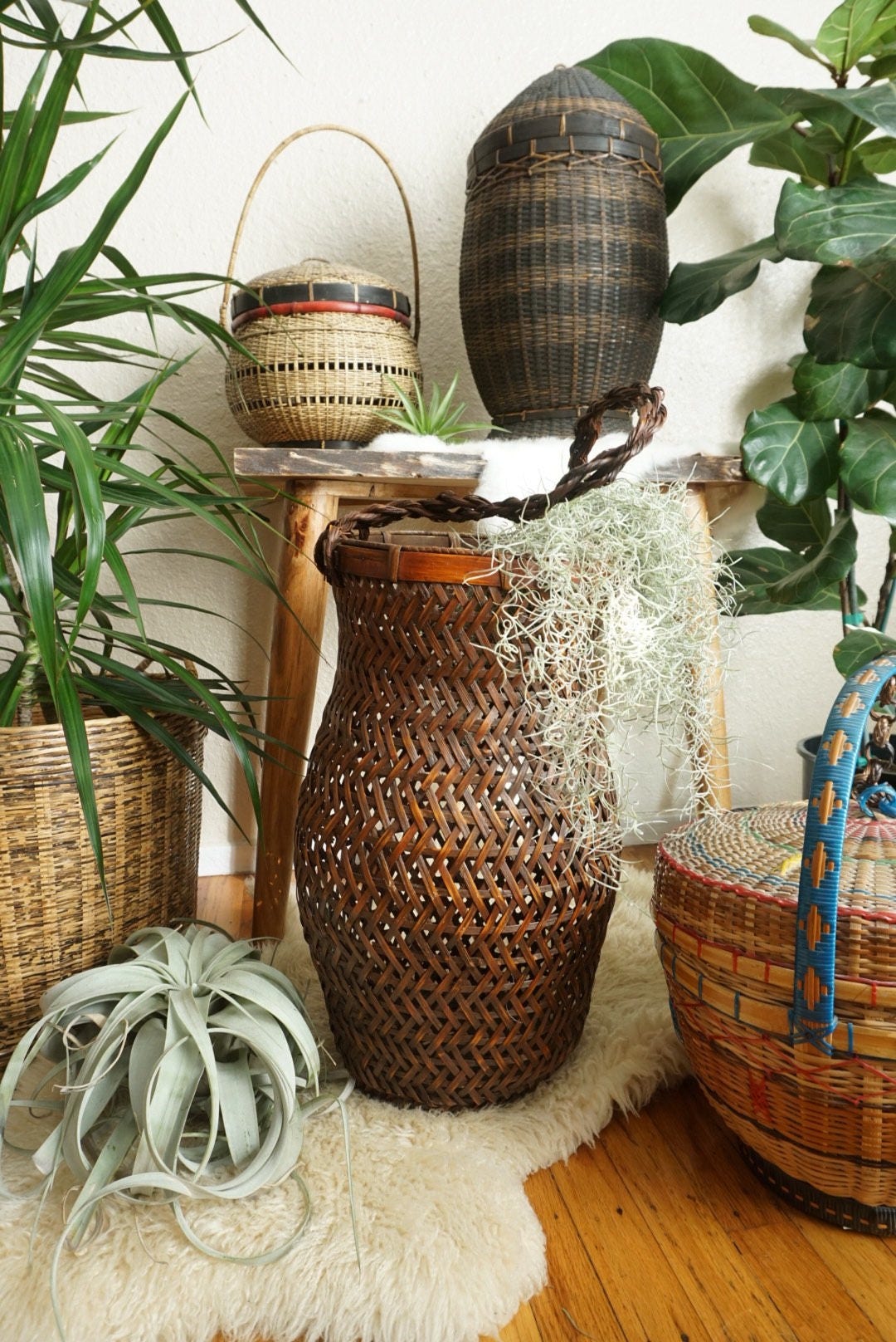 Fill them up with cozy textiles and your favorite magazines. It can vary from different color open weave wicker baskets, round or oval floor baskets with or without handles, round, square or rectangular woven baskets, bulging storage baskets, to decorative wicker storage baskets made of twisted seagrass. Vintage / antique open weave tall handled funeral ~ wedding ~ florist ~ church ~ sanctuary open weave handled wicker / rattan flower basket. Set of 3 includes 1 small, 1 medium and 1 large. With handles 15.5 inches tall hand woven from naturally grown rattan wipe rattan clean with damp cloth.